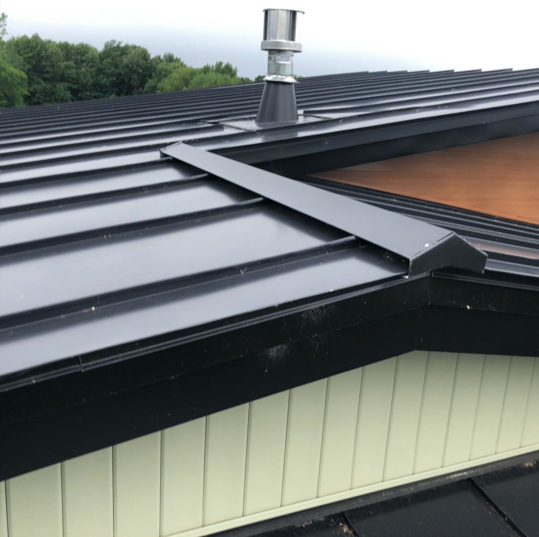 Details: Standing seam roof on a new residential home in North Hero, Vermont. This project features 24ga Drexel, Matte Black. This house is right on the lake and is exposed to extremely high winds. To make sure our projects can withstand these adverse conditions, we screw all of our clips and every pan is double locked.